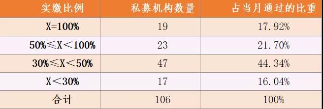 上圖為2021年10月登記的私募基金管理人實繳資本情況分布圖。注冊資本完全實繳的私募基金管理人有19家。大多數(shù)通過的私募基金管理人實繳資本集中在30%-50%的區(qū)間。值得注意的是,實繳比例小于30%的私募基金管理人有47家,根據(jù)《登記通知》的要求,實繳資本不足100萬元、實繳比例未達注冊資本25%的情況,協(xié)會將在私募基金管理人公示信息中予以特別提示。